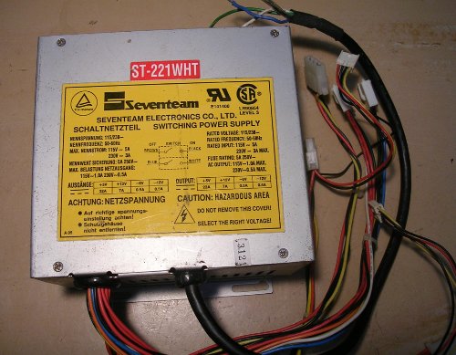 Para este trabalho, foi desmontada como exemplo uma fonte de PC modelo AT, da época do 486 e Pentium. Esta fonte apresenta algumas qualidades: a Seventeam ST-221WHT não é um modelo top de linha, mas fica bem acima da média. Em relação a fontes com qualidade inferior, as diferenças são notadas na qualidade dos componentes utilizados e em um projeto mais cuidadoso, que resulta na existência de filtros de entrada e melhores sistemas de proteção.