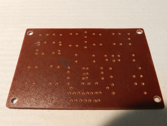 Eventualmente, poderá ser necessário corrigir algum detalhe na placa, como neste projeto que serve de exemplo, onde um terminal do circuito integrado não tem conexão com nenhum outro ponto e teve de ser isolado. Rever a figura 19. A placa pronta, com toda a furação, está na figura 36.