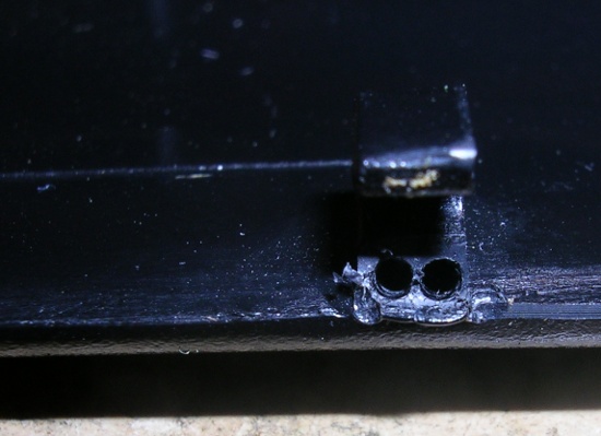 Além disso, pode ser interessante pingar um pouco de cola de cianoacrilato (Super Bonder ou Scotch Bond), para aumentar a resistência do reforço e preencher os espaços vazios dos furos. No meu caso, isto não foi necessário. Nas figuras 8, 9 e 10, pode-se ver como ficou a aparência final da peça.