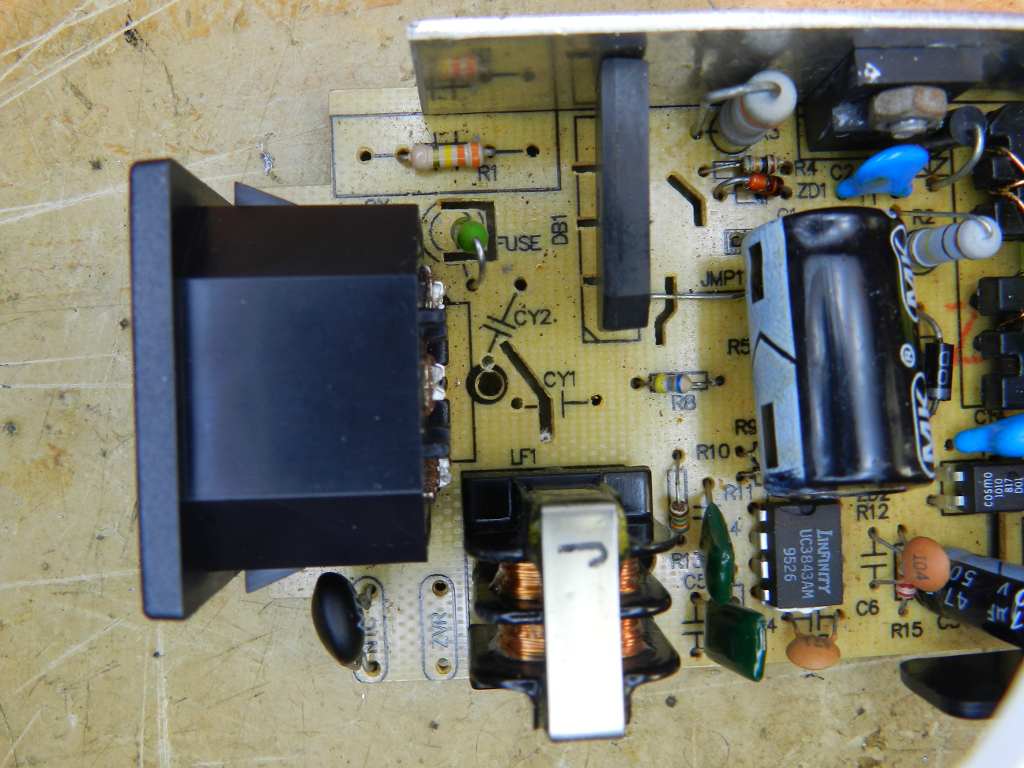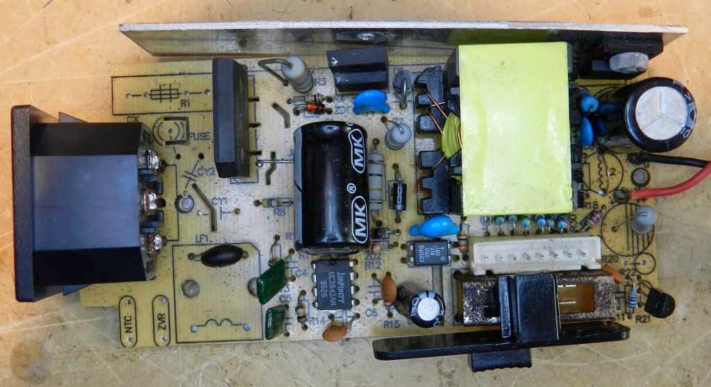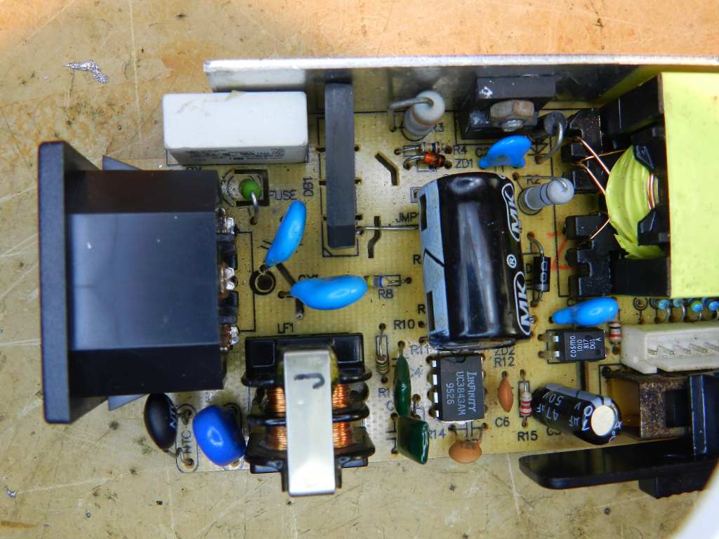 A razão é que, se o equipamento sucateado do qual foram retiradas as peças, utilizava uma frequência maior do que a frequência de chaveamento da fonte sob conserto, os seus filtros tinham como foco suprimir frequências além da frequência atual de trabalho. A troca, pura e simples, reduz a capacidade de supressão de interferências, mas é melhor que nada. Vejamos a lista dos itens colocados na fonte.