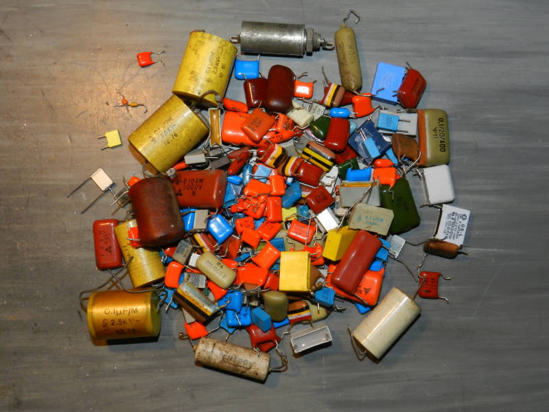 Agora, podem ser testados diretamente no aparelho capacitores tão variados como os da figura 14. Também pode ser feita a descarga do capacitor, caso necessário, num dos terminais da “ponta de prova”, pois eles são longos o suficiente para isso. Uma opção mais segura, seria colar na lateral do aparelho uma placa metálica para esta função.