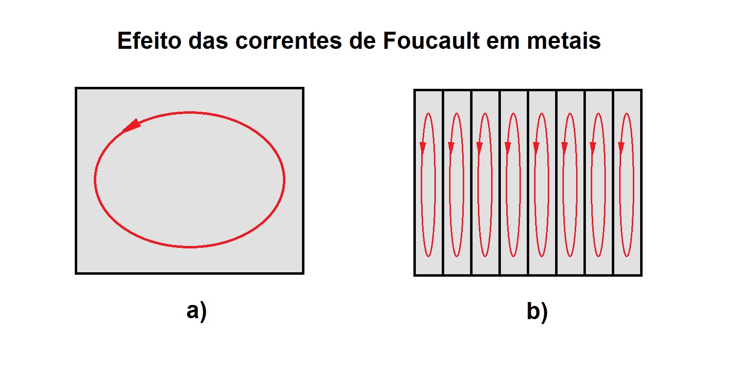 Todo transformador que opera em baixas frequências (até 400Hz), tem problemas com as correntes de Foucault, também chamadas de correntes parasitas. Elas surgem em qualquer metal, quando imerso em um campo magnético em movimento.