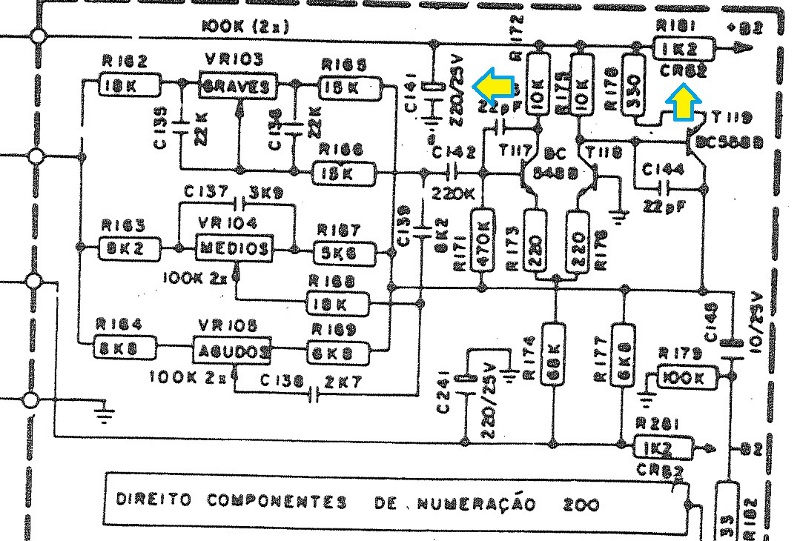 É interessante notar que há um erro que não foi corrigido no projeto da Elektor, tanto no artigo em portugês quanto em italiano, que é o valor de C1 e C2. Na lista de material consta 100uF/25V, mas no esquema aparece 1000uF. Pelo tamanho dos capacitores na placa e pela sua função (filtragem da fonte simétrica interna), obviamente os valores corretos são os do esquema.
