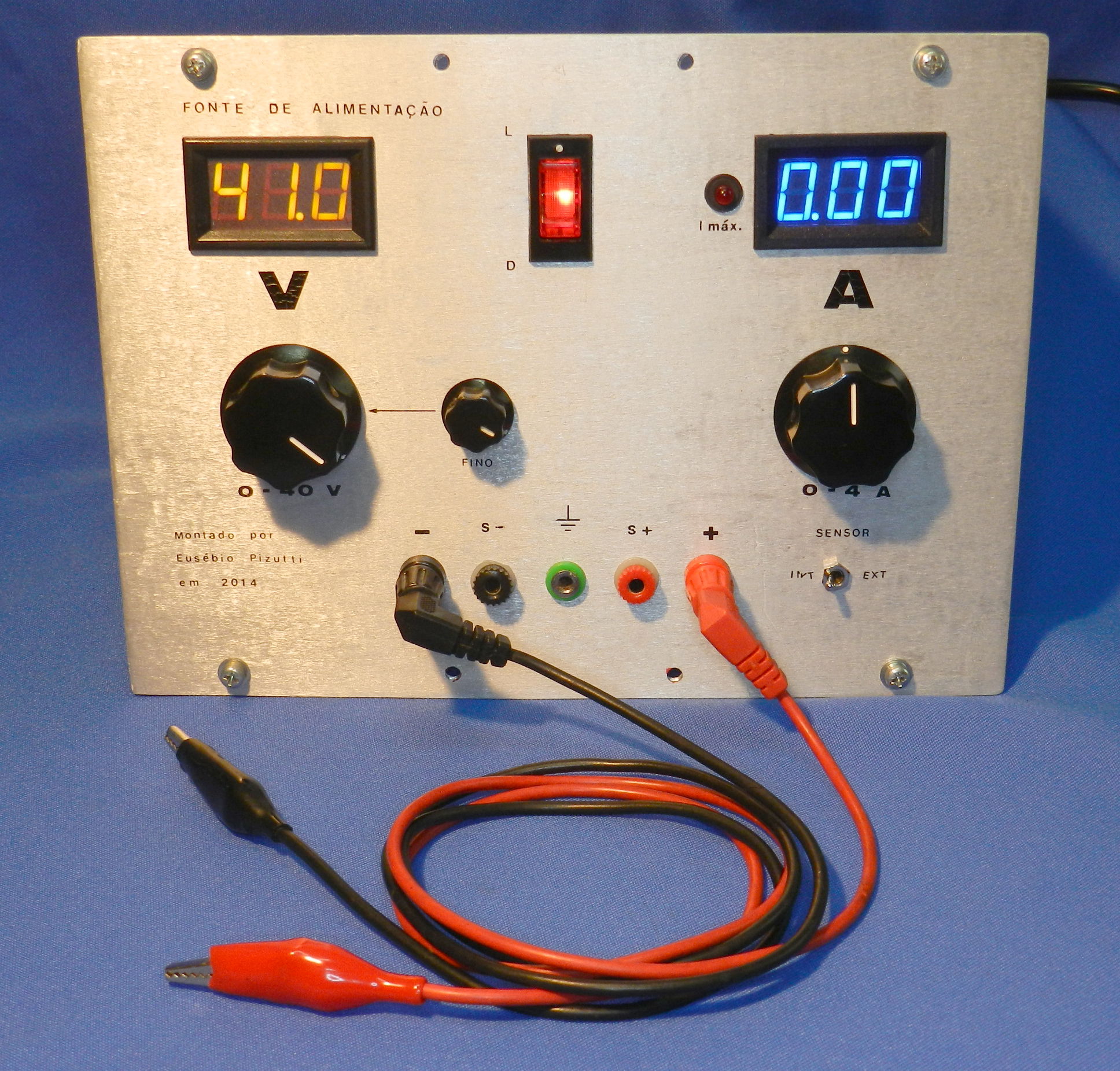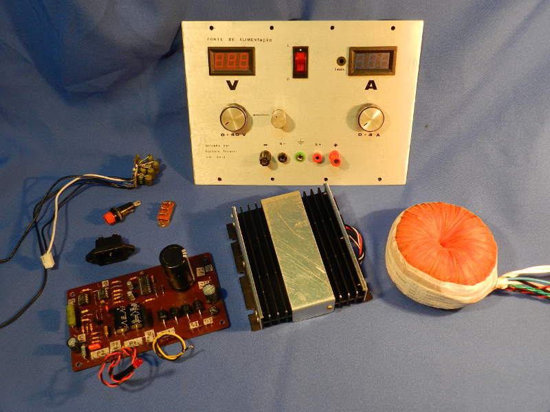Conto aqui como foram feitas a montagem e as pequenas alterações no circuito, que entrega de 0 a 40V CC, com controle de corrente de 0 a 4A. Tem proteção total contra curtos-circuitos e compensação para a queda de tensão nos cabos.