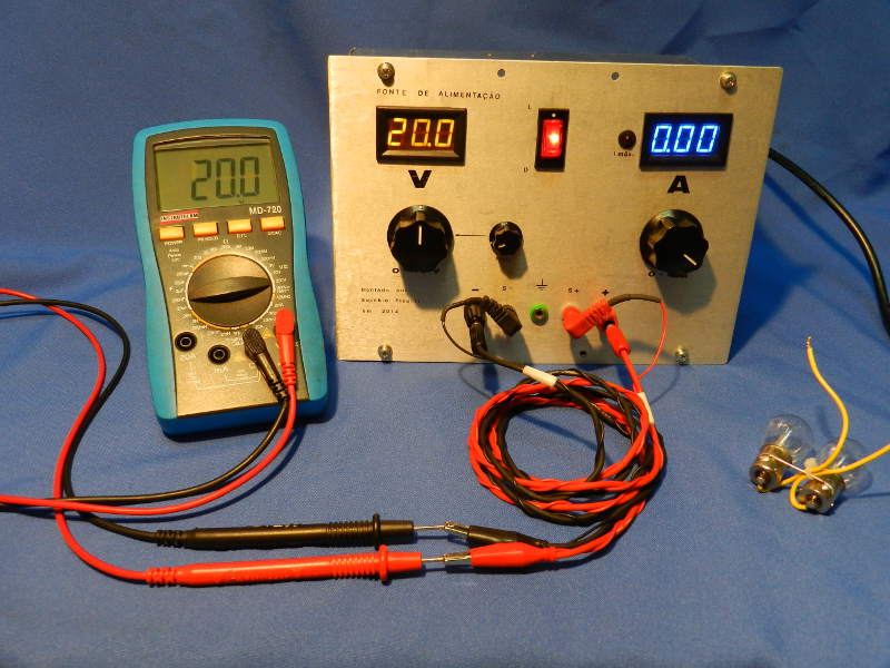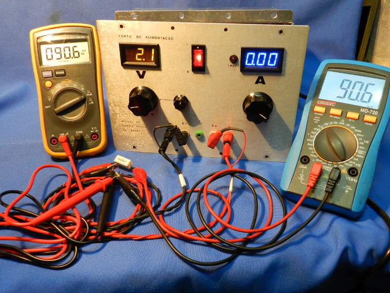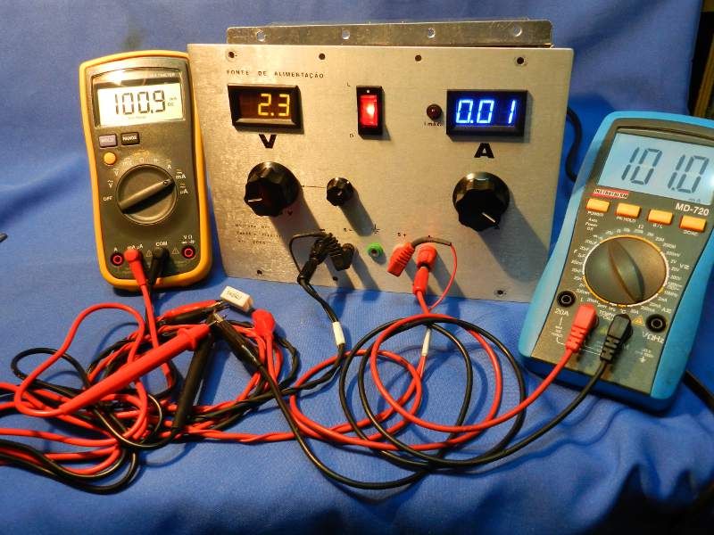 Sem mais um pingo de paciência, recoloquei o amperímetro anterior, com a lembrança de que não posso me basear nele para correntes menores que 200mA.