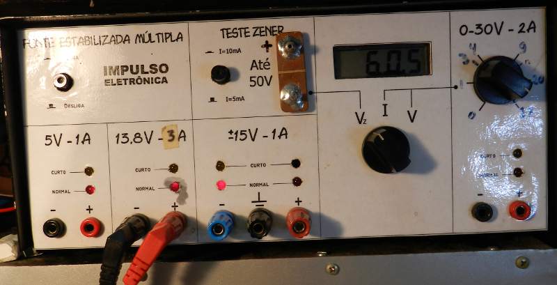 A figura mostra o display da fonte em zero, enquanto que o multímetro indica 15mA. Logo a seguir conto o que aconteceu.