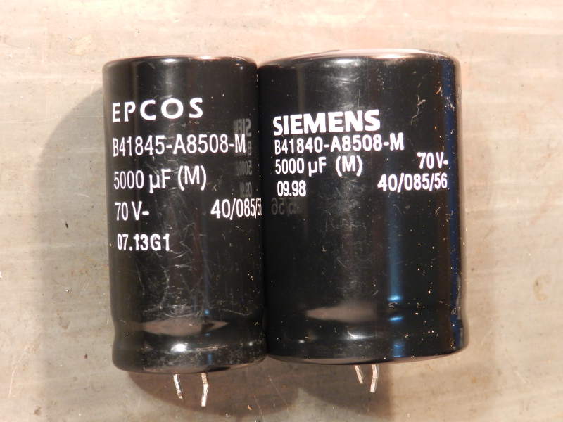 Figura 25 – Capacitores eletrolíticos de mesmo valor, mesmo modelo e mesmo fabricante, produzidos com 15 anos de diferença.