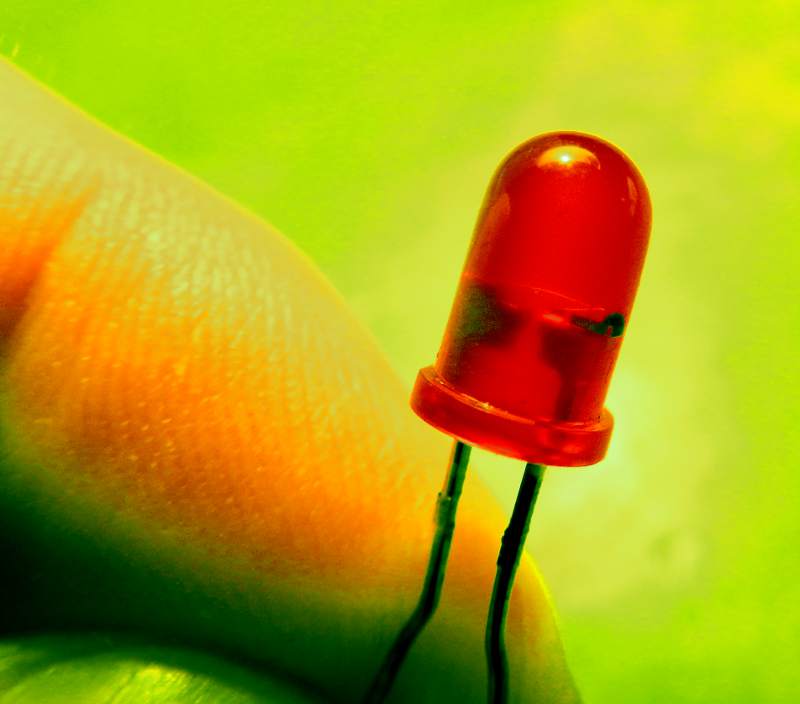 Para outro indicador, o LED que indica curto circuito, foi escolhido um tipo que pisca sozinho, o “LED flasher“. Ele tem embutido no invólucro o oscilador (figura 8) e ao ser energizado, começa a piscar. O LED foi colocado ao lado do amperímetro e ajuda a chamar a atenção no caso de ser ultrapassado o limiar (ajustável) da corrente máxima.