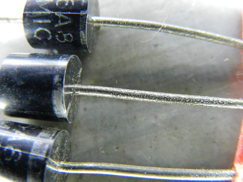 Os diodos, por sua vez, foram utilizados os disponíveis no estoque. Para a retificação dos 4A, a placa foi modificada para receber 4 diodos 6A8, que aguentam até 6A. Deste modo, fica reduzido o estresse sobre o estágio de retificação. As outras duas fontes foram feitas com pontes retificadoras comuns, de 1 ou 2A.