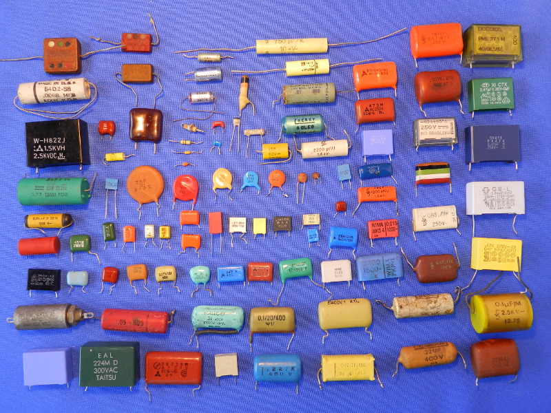 Figura 14 – Capacitores não polarizados de diversos tipos (cerâmico, mica, poliestireno, poliéster, polipropileno)