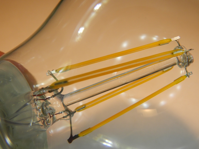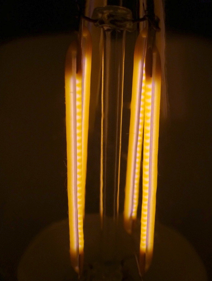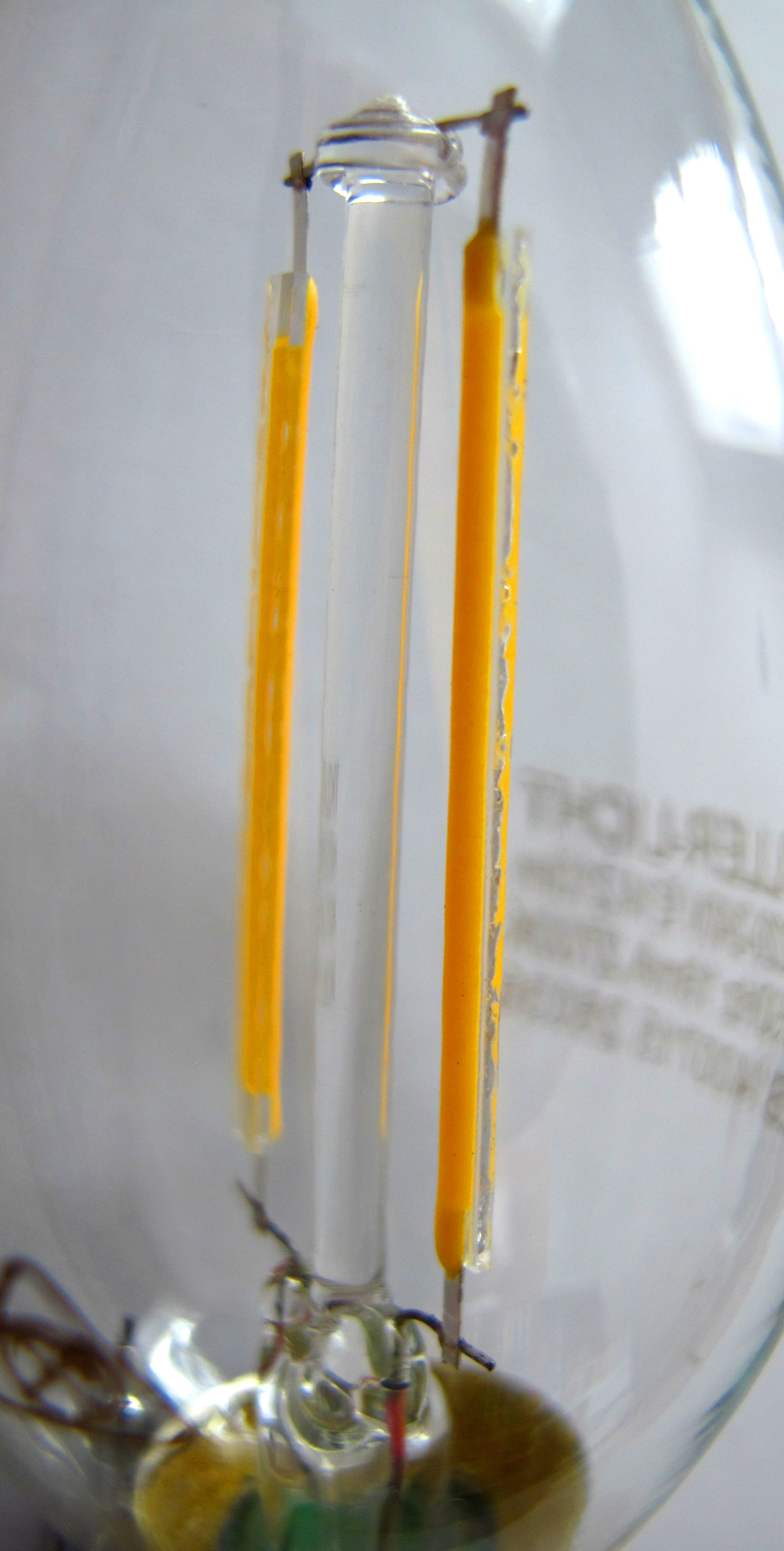 Figura 12 – Lâmpada de filamentos LED comum, fracamente iluminada. Fonte: Electronics Stack Exchange [26].