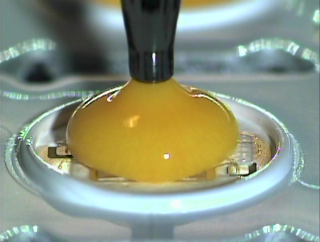 Numa folhinha de aproximadamente 5 x 8 cm cabem 4 mil pastilhas LEDs, que são posicionadas e coladas à mão sobre a bigorna da lâmpada LED. Obviamente, para fazer isso é utilizado um microscópio estereoscópico, também conhecido por lupa pelo pessoal da biologia. O aumento deve ser algo em torno de 20 a 60 vezes. Depois os LEDs são soldados, a pastilha é coberta com fósforo – no caso do LED branco -, moldados em epóxi, separados e embalados. Cada fase deste processo é feita em máquina/pessoa diferente. Agora imagine centenas destas linhas de montagem trabalhando juntas… Assim é uma típica fábrica chinesa.