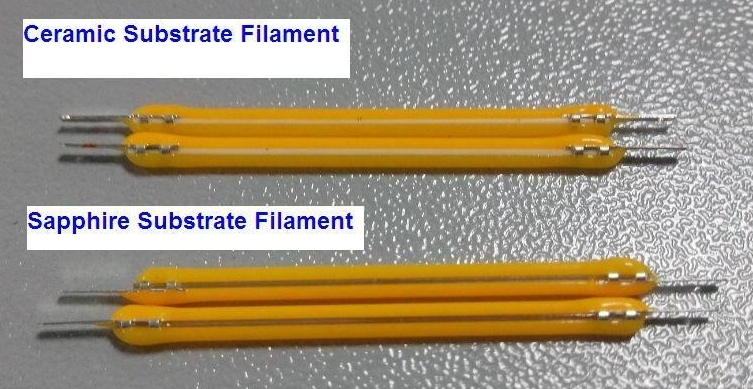 Durante a confecção deste artigo, nas buscas de fabricantes de lâmpadas completas ou só de filamentos LED, percebi que muitos vendedores dizem que o substrato de seus filamentos é de safira (considerado o melhor), pois utilizam LEDs de boas marcas. Mas não explicam se o substrato a que se referem é o dos LEDs ou da placa que os acomoda…