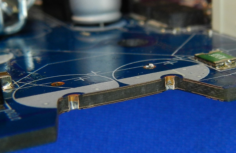 A desobstrução dos furos na placa foi outro desafio: simplesmente não deu para fazer só com o aquecimento. Para isso, utilizei uma broca de 0,8 mm, numa pequena parafusadeira, em velocidade bem baixa, com toda a suavidade possível, torcendo para não arrombar os furos metalizados. Deu certo, pois os furos parecem mais largos que a broca (figura 25).