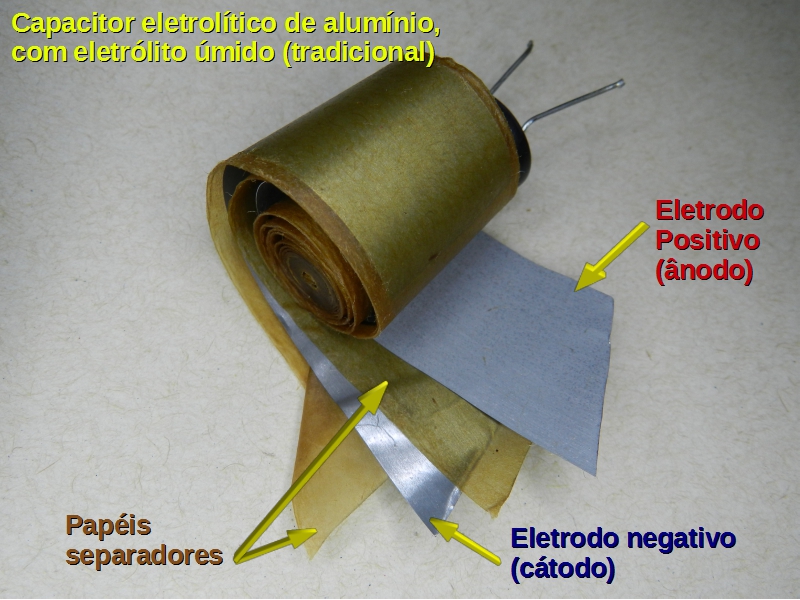 Assim, quando houver menção a “capacitor de eletrólito úmido” ou “eletrolítico úmido”, será uma referência aos capacitores eletrolíticos de alumínio tradicionais, que podem vazar ou secar o eletrólito.