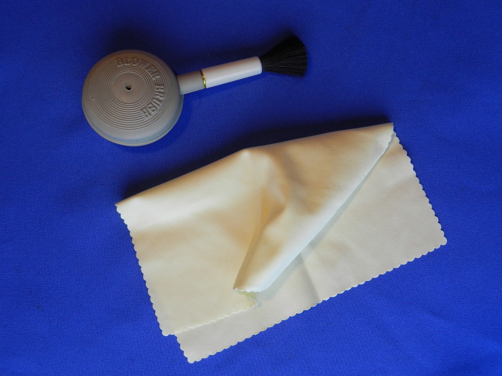 O pincel com soprador é utilizado novamente (limpo), para remover partículas de pó e fiapos que possam ter ficado na superfície da lente (figura 32). NEM PENSE EM SOPRAR DIRETAMENTE, pois os perdigotos da saliva, cheios de enzimas e bactérias, sujam novamente a lente e poderão desencadear, no futuro, o crescimento de fungos. Se não tiver nenhum outro recurso, paciência, bafeje o hálito sobre a lente e limpe com um lenço de papel.