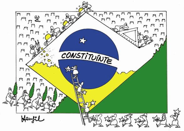 Bandeira do Brasil durante a redemocratização, 1987. Fonte: Jornal JR – http://www.jornaljr.com.br/2014/06/05/henrique-de-souza-filho-o-henfil/