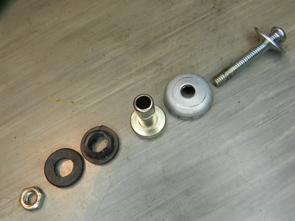 A sequência original da montagem do parafuso do espaçador aparece na figura 11 e as peças da adaptação com a bucha, na figura 12. As figuras 13 até 21 mostram a montagem da bucha e a aparência final.
