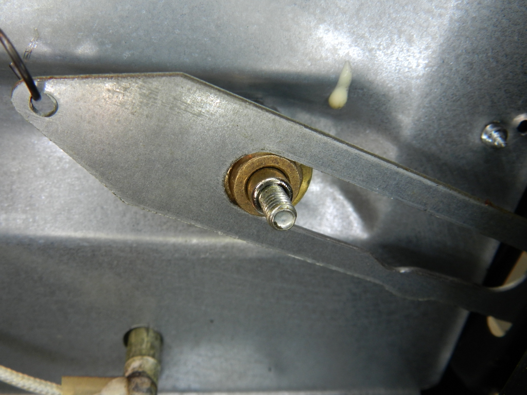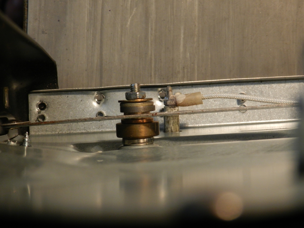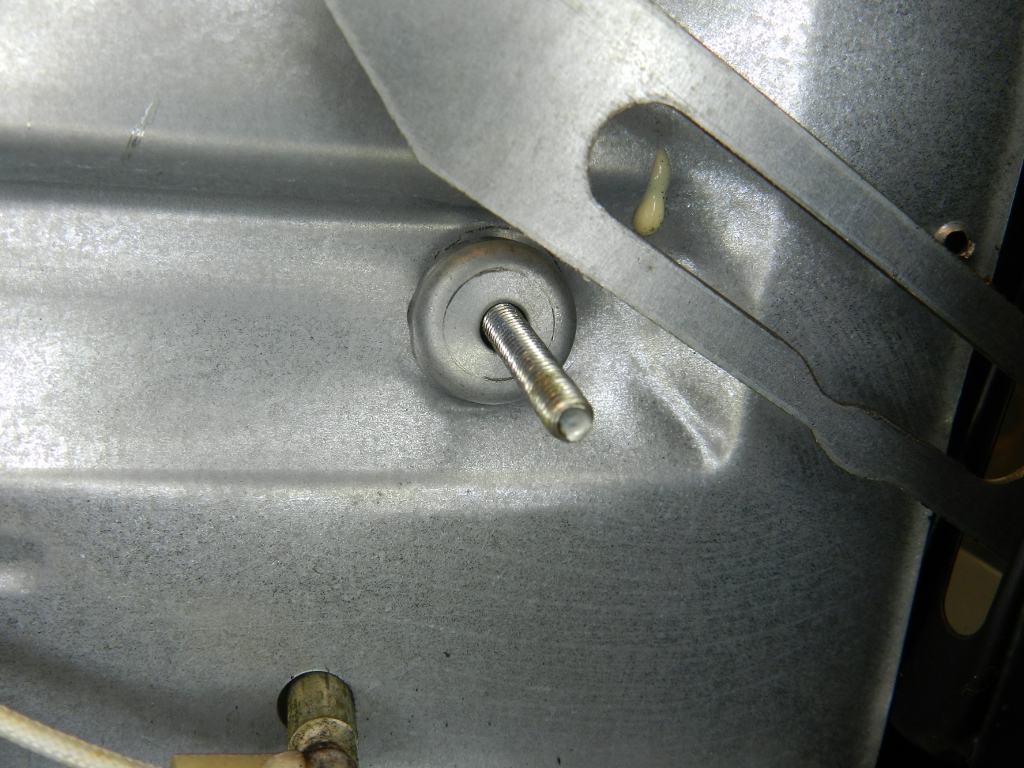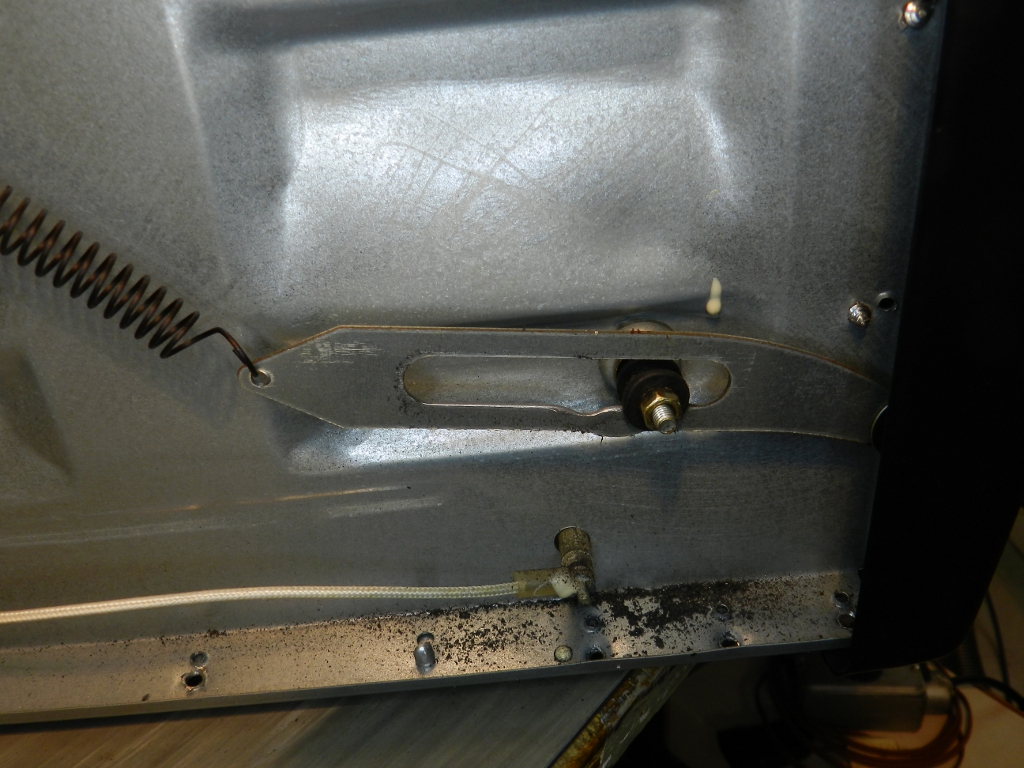 O espaçador é feito de um polímero plástico de alta temperatura e deve aguentar a temperatura interna máxima do forno (250°C), ou um pouco menos que isso. É macio, tem textura quase igual a de borracha, inclusive é parecido com os calços de nosso outro forno, a gás, que apoiam o deslizamento de uma grelha, dentro do forno. O uso constante, aliado à mola forte e à maciez excessiva do espaçador, resultaram no defeito. Com o rompimento, a haste metálica, conectada à porta, começou a raspar no mancal (figura 8).