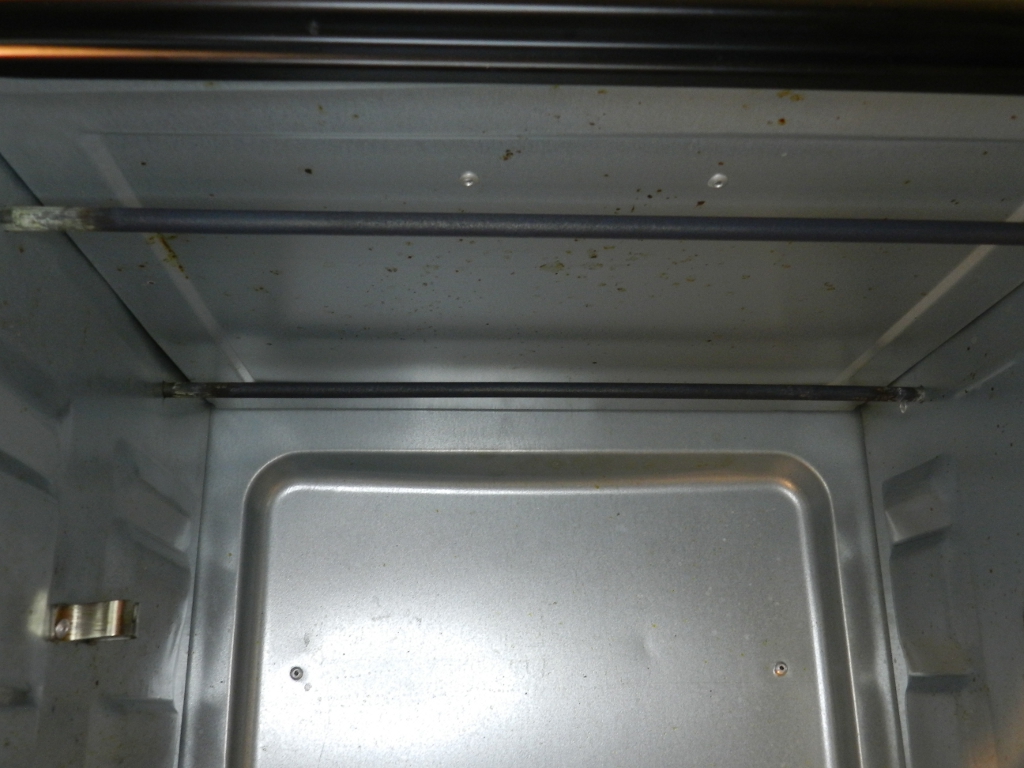 Interessante é que a foto da caixa do equipamento exibia assar um frango, mas o forno é tão pequeno que a ave ficaria raspando nas paredes, sem falar na lambuzeira espirrada para todo o lado. Por isso, o espeto nunca foi utilizado. Talvez um dia, um espetinho embalado em celofane ou alumínio…