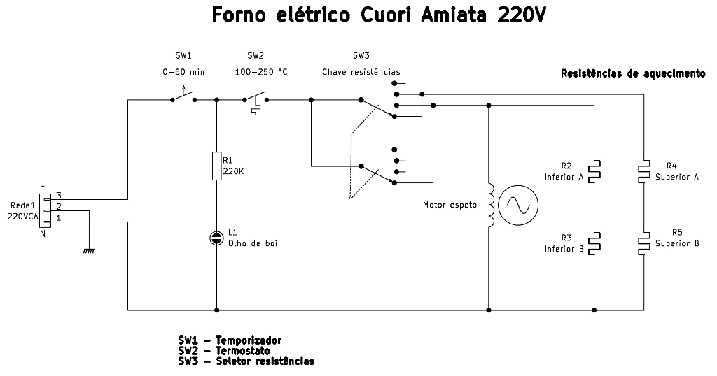 Além disso, as modificações aqui sugeridas são somente para fornos do mesmo tipo (totalmente eletromecânico, sem peças ou módulos eletrônicos). Basicamente, são alteradas as ligações das 4 resistências, que ficam em série ou paralelo (dois pares individuais), conforme for 220V ou 127V, respectivamente. Os fornos com circuitos eletrônicos precisarão de mais adaptações, que não irei comentar neste artigo.