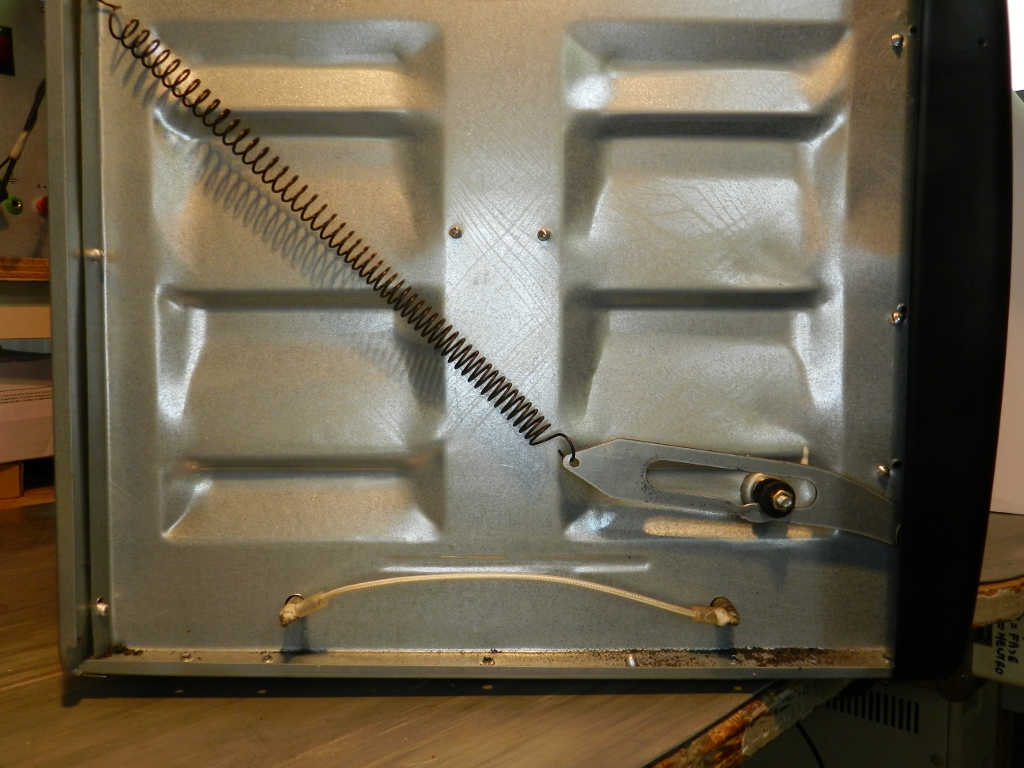 Como o forno perde muito calor com a porta entreaberta, resolvi que iria lubrificar o mecanismo com grafite (para não dar cheiro) e talvez trocar a mola.
