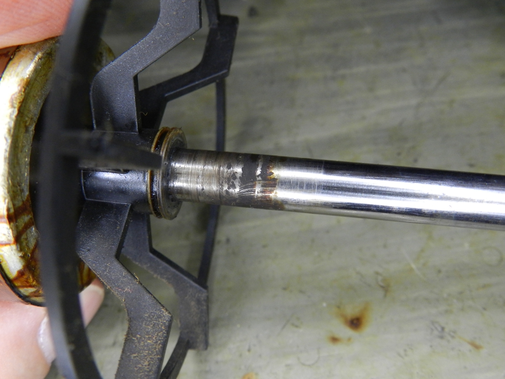 A solução contra o travamento é simples: abrir o motor, limpá-lo e repor óleo de máquina nos feltros. O eixo costuma apresentar um uma crosta de sujeira na posição das buchas, que precisa ser removida, senão o rotor travará de novo, em pouco tempo (figuras 36 e 37).