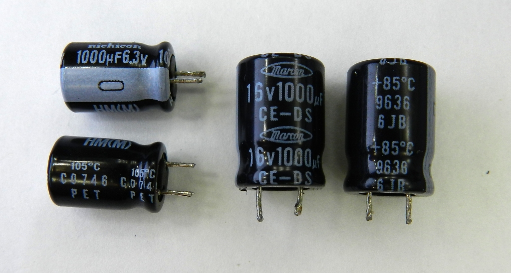 Fig. 4 – Capacitores eletrolíticos de 1000uF, com diferentes tensões de trabalho e classes de temperatura.