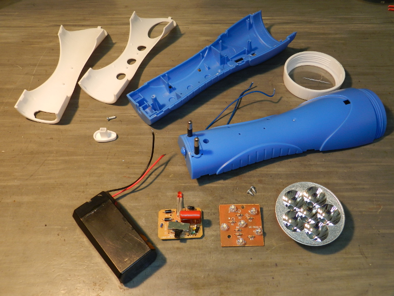 Mas fui iludido. Uns meses atrás, a lanterna começou a fazer um barulho de fritura quando posta para carregar e não funcionou mais. Como não podia aceitar um tempo de vida tão curto, decidi abri-la e identificar as falhas ocorridas.